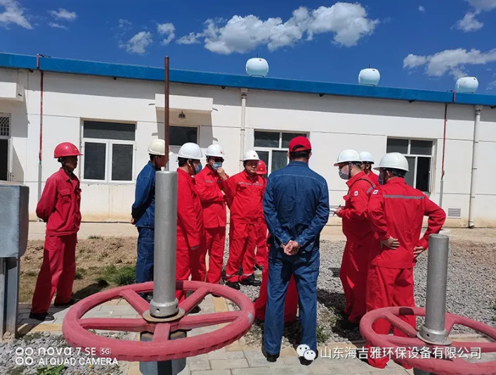 在作业区袁经理进行陪同下,考察组对公司一体化水处理设备进行详细了解,并仔细将来水和出水进行对比,细致询问公司产品和工艺流程。