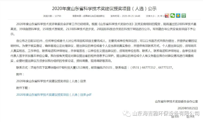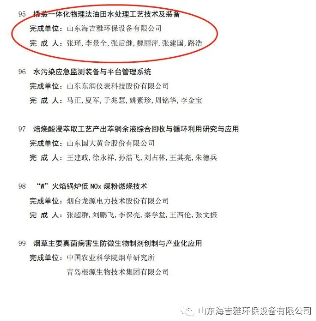 喜提山东省科技进步奖-“撬装一体化物理法油田水处理工艺技术及装备”荣获省科技进步奖
