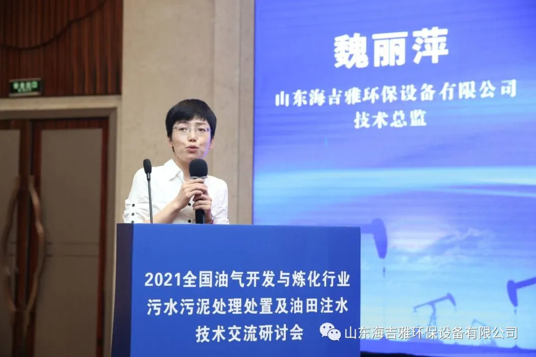 我公司作为集油田水处理设备的设计、制造、销售、安装、维修改造与技术服务为一体的专职油田水处理服务企业、高新技术企业单位,受邀出席了本次研讨会,公司技术总监魏丽萍在本次研讨会中做出了专题报告。