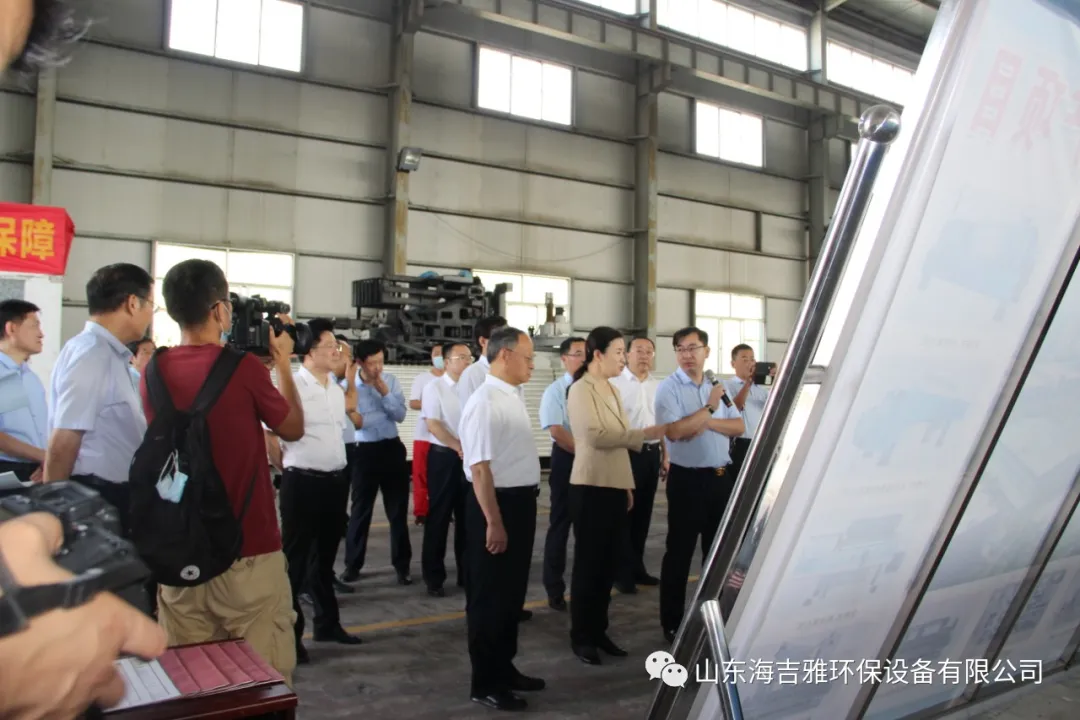 2021年10月2日上午,枣庄市委副书记、市长张宏伟一行领导莅临海吉雅环保参观、视察,董事长张后继热情接待了来访团,并向市领导团详细介绍了公司的发展状况,公司主要产品,目前公司销售业绩,及完善的售后服务系统。